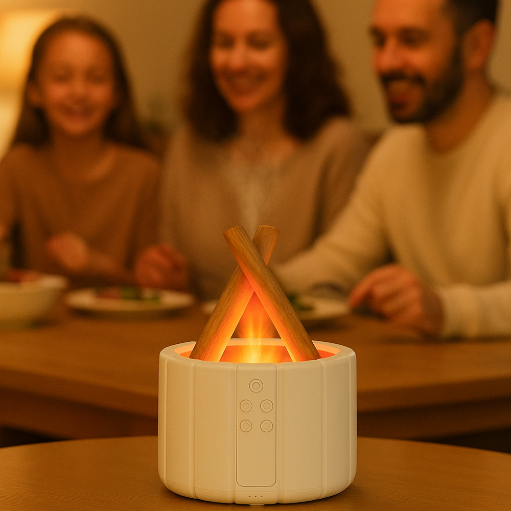 Das bewegte Flammenlicht wirkt wie echtes Feuer, warm, hypnotisch und beruhigend. Kein Aufwand. Nur Atmosphäre pur.